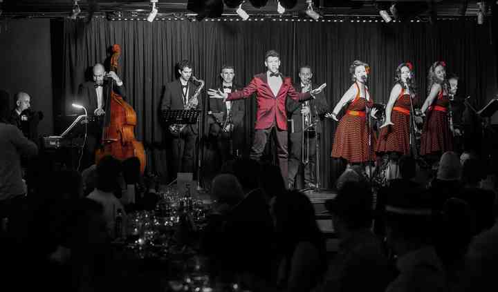 La banda, liderada por Juanjo Navarro como vocalista crooner, cuenta con hasta nueve músicos del colectivo sedajazz y las excelentes voces del trío vocal Beluin Sisters (Paula Almendros, Elena Almendros y Victoria Llovera).